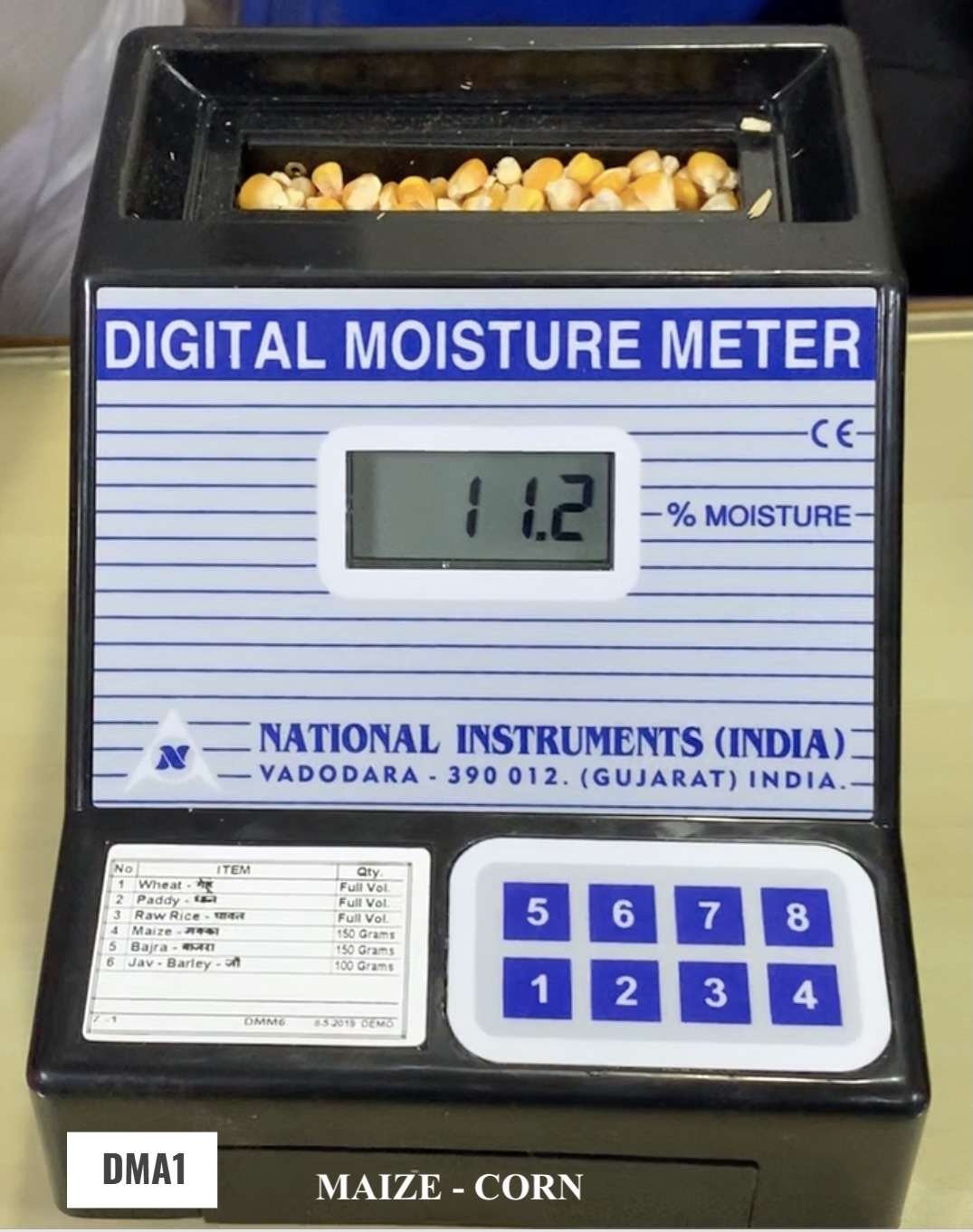DMA1 Maize Digital Moisture Meter merupakan alat ukur kadar air digital yang dirancang untuk mengukur kelembaban pada jagung (maize / corn) secara cepat dan akurat. Alat ini sangat penting dalam sektor pertanian untuk memastikan kualitas jagung sebelum proses penyimpanan, distribusi, maupun pengolahan.